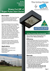 The Unilux Sharp Cut Off v2 Super Pulse Start Series are exceptional high performance environmental type floodlights, proudly designed and manufactured in Australia. Specifically designed for tennis court lighting, the v2 series is available in two options, 575w medium case and 875w large case. Both options utilise new generation super pulse start metal halide lamps with outstanding long life ratings never seen before in metal halide lamps.